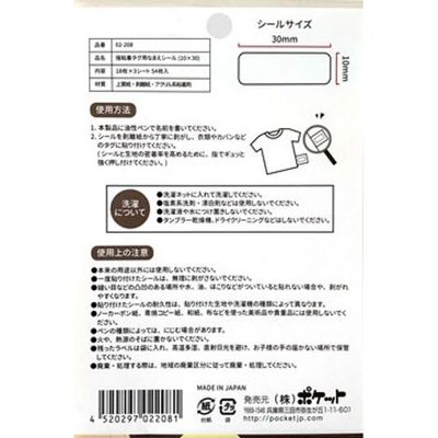 Strong Adhesive Name Labels for Clothing Tags 10×30mm, 54pcs (Made in Japan)